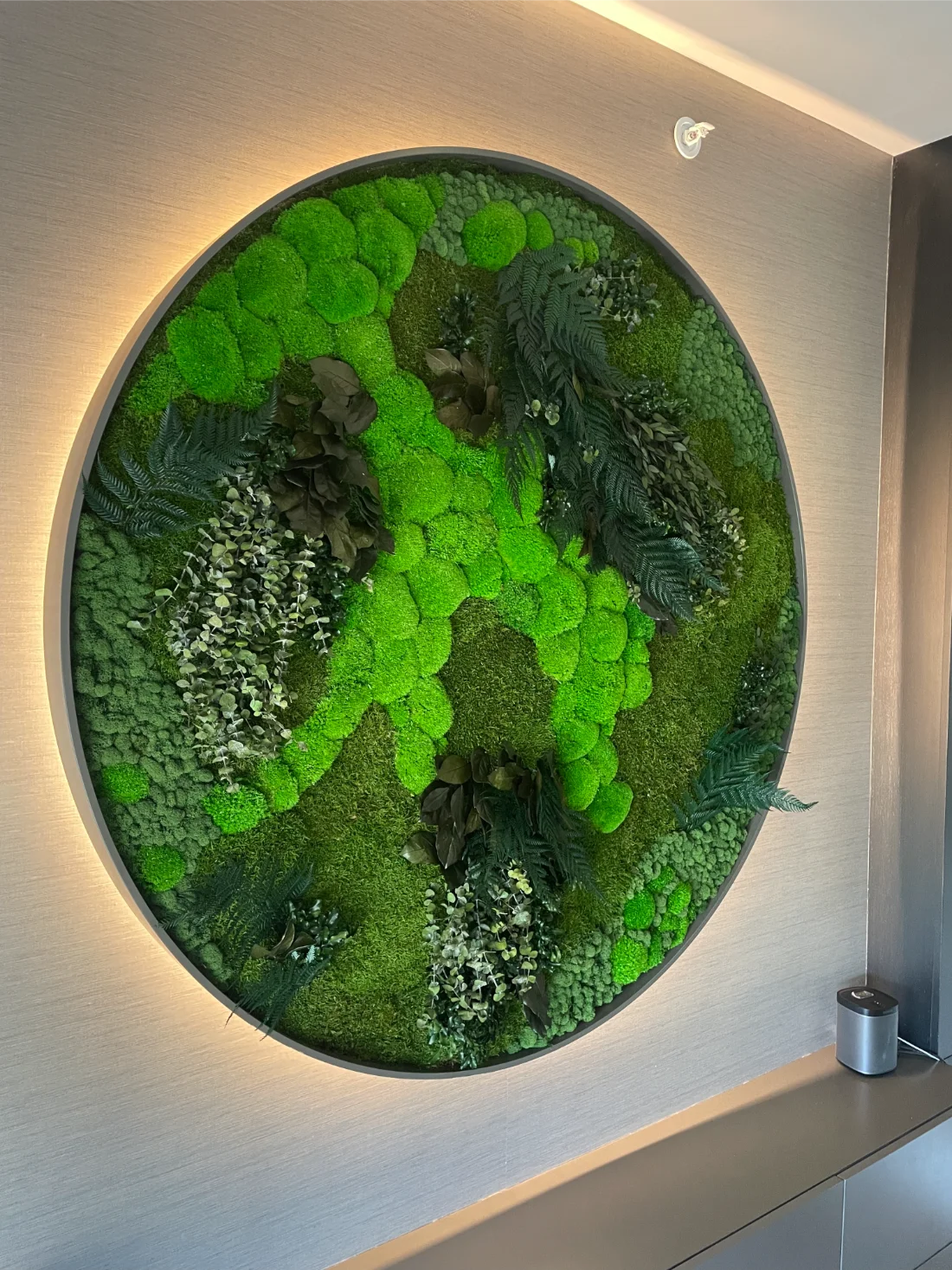 For designers, hoteliers, and event professionals, this means creating displays and installations that remain stunning throughout the winter and beyond. From grand lobbies to intimate dining settings, moss can carry a space through multiple seasons without fading or needing replacement. It’s a design element that honors nature’s rhythms while reducing waste — a quiet gesture toward longevity, care, and thoughtful beauty in a fast-changing world.