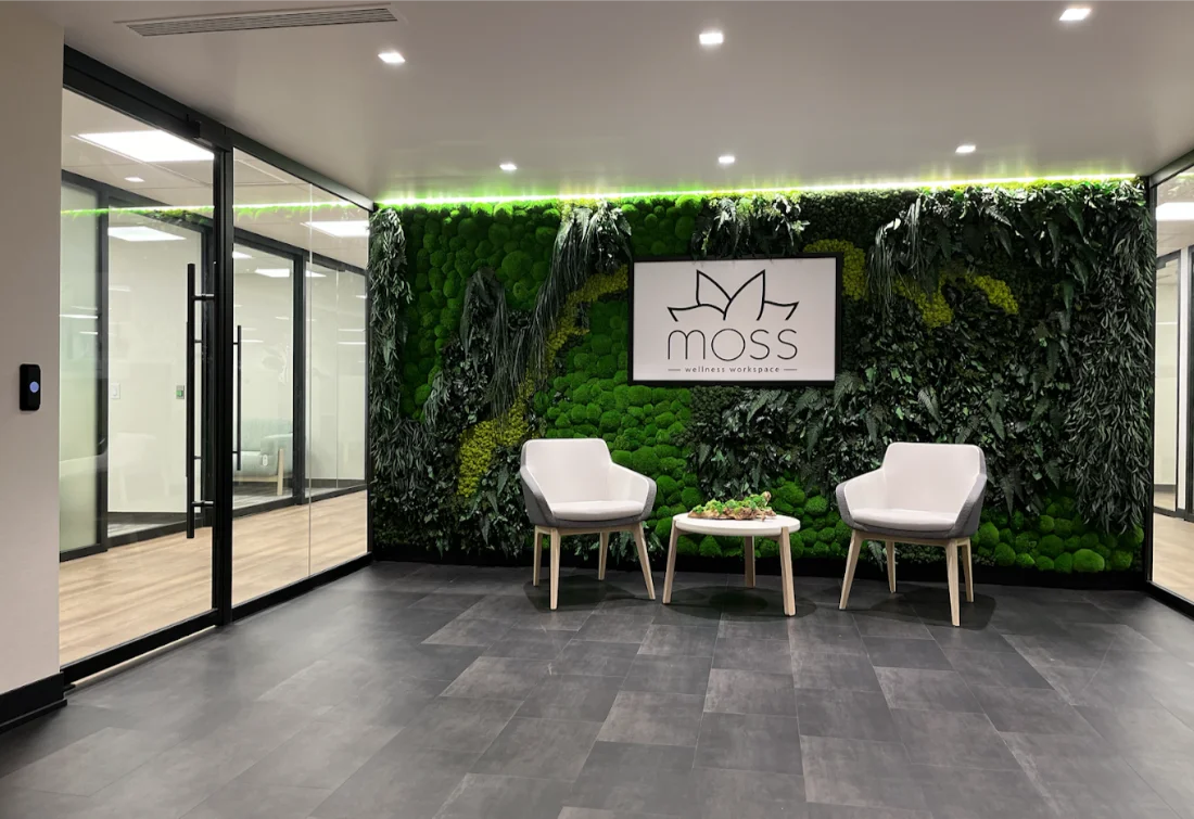 Today’s biophilic interiors extend far beyond live plants. Designers work with natural textures, organic forms, layered materials, and immersive focal points to create environments that feel grounded and restorative. Features like moss walls and sculptural moss wall art have become especially compelling, offering a tactile, visual connection to nature without the complexity of living systems.