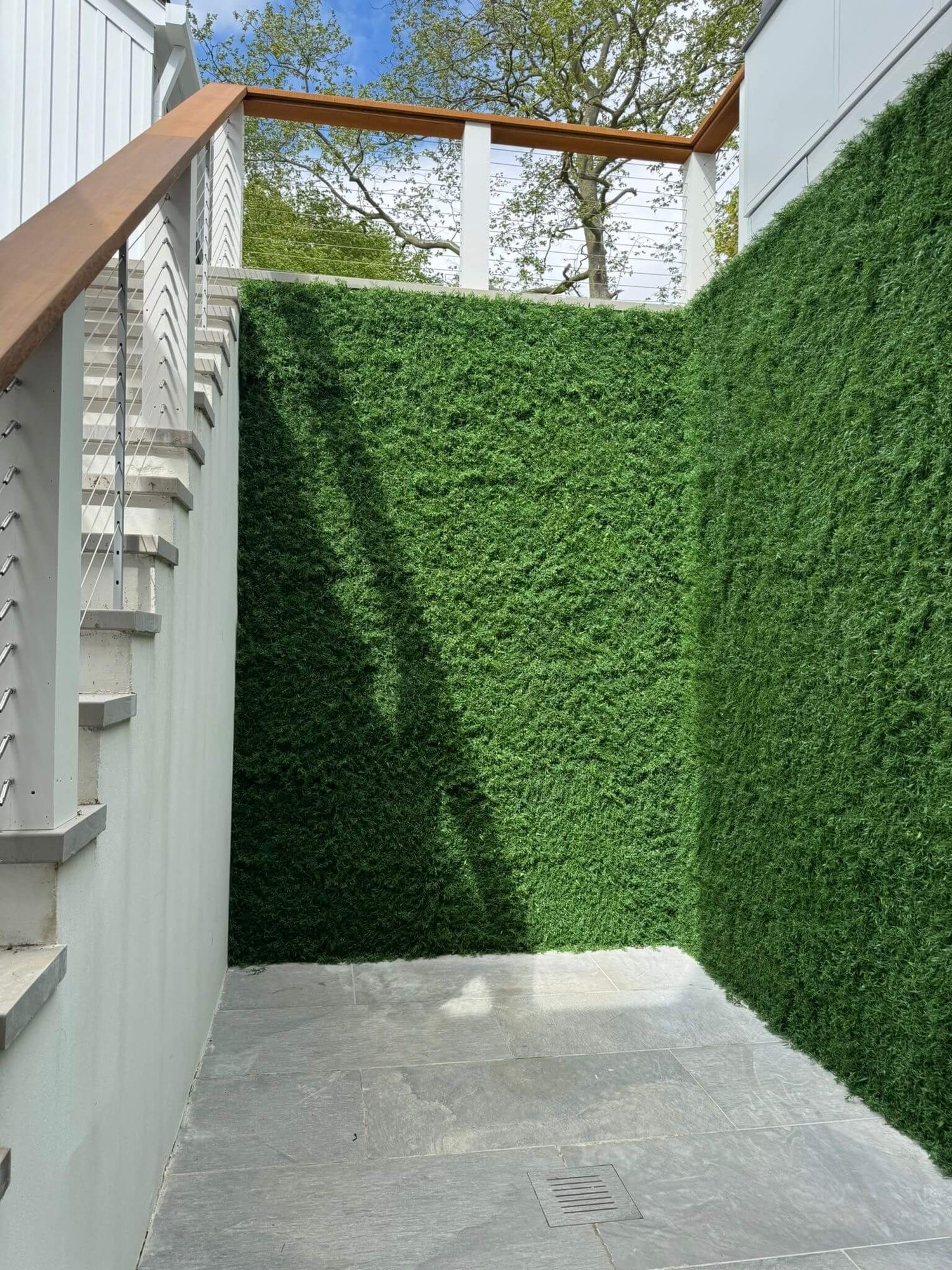 Biophilic design has emerged as one of the most compelling approaches for compound wall décor. Artificial green wall panels offer the lush, textural beauty of nature without requiring ongoing maintenance. Naturalist’s Artificial Wall Gardens are specially engineered for outdoor durability, delivering a rich, realistic look with no watering, trimming, or fuss.