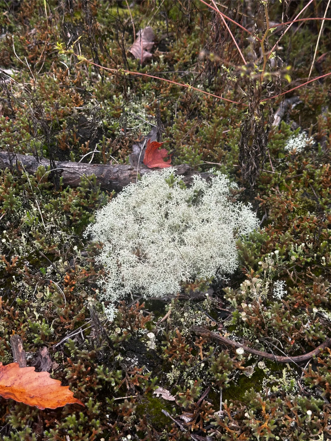 Then came reindeer moss — technically a lichen, though it has more in common with coral reefs than with the mosses it shares space with. Pale gray-green and spongey to the touch, it grows like a frozen wave, branching into fractal forms that feel both architectural and organic.
