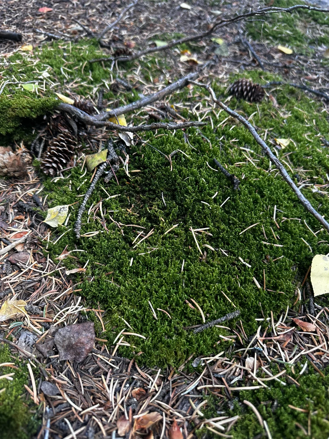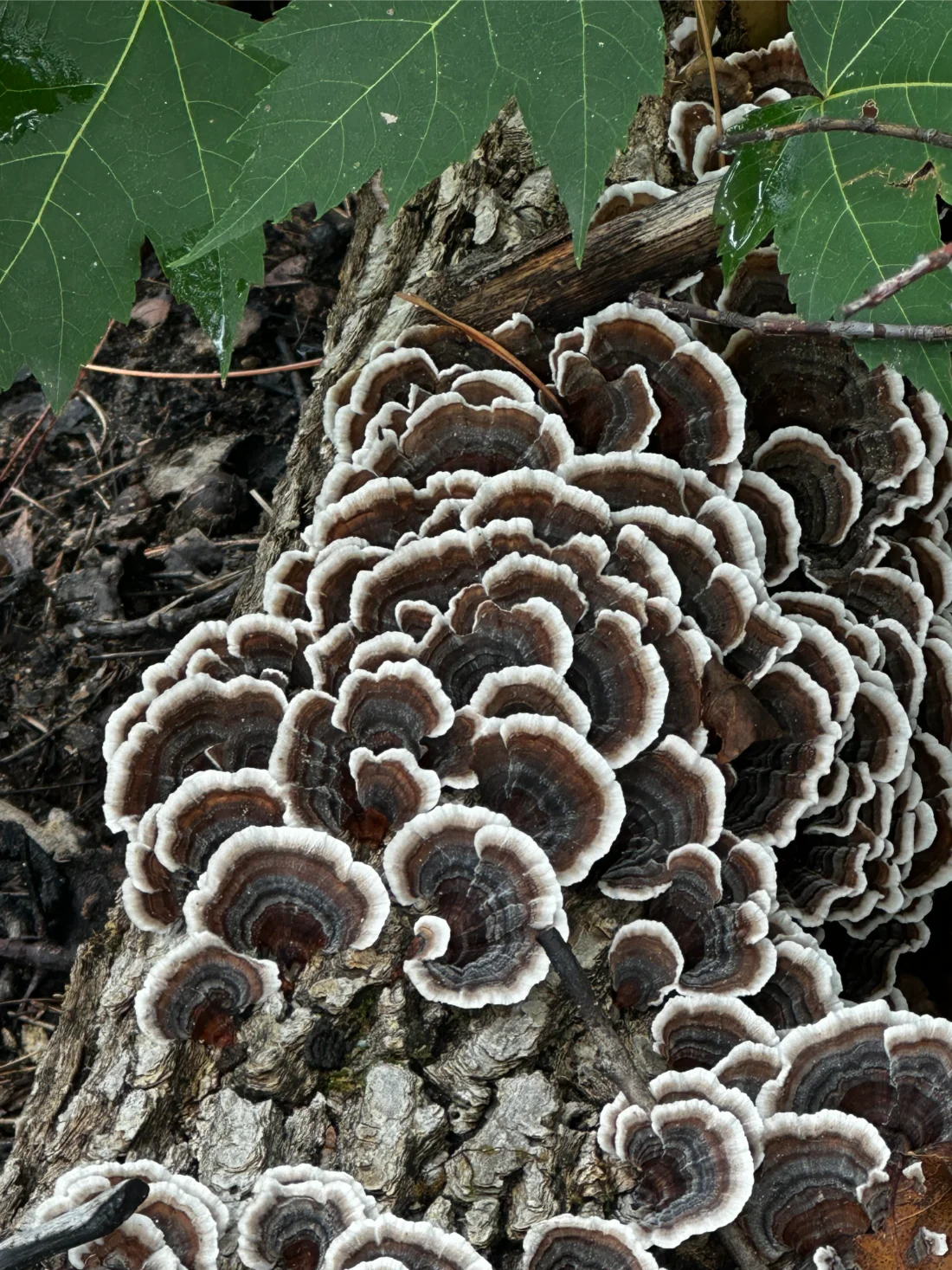 They weren’t moss, but they demanded attention anyway. Turkey tail mushrooms, curling and layering along a fallen log, brought color to the forest in rings of ochre, blue, and chestnut. Each one was a masterpiece in its own right — delicate bands that told the story of time and decay, of life building upon what came before.