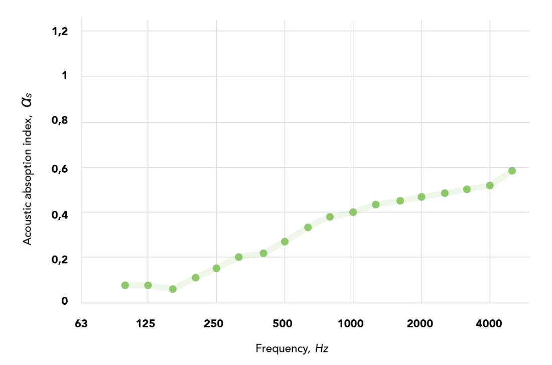 Depending on moss type and density, absorption coefficients (α) can reach values between 0.55 and 0.90, particularly for denser mosses such as Pole or Bun moss. These results align closely with findings from Moss Art London’s CARE CEDIA tests, confirming moss’s ability to absorb sound in the mid- to high-frequency range where human speech typically resonates.