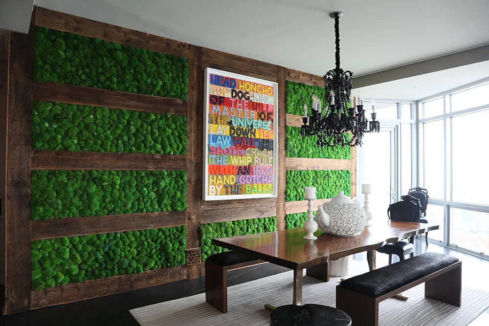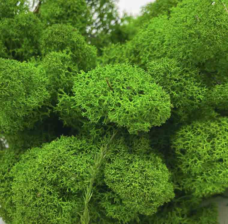 Reindeer Moss, with its soft, cushiony texture and vibrant color range, is a favorite in modern biophilic interiors. It’s actually a type of lichen, rather than a true moss, and is known for its volume and sculptural quality. Reindeer Moss is particularly well-suited for covering large surface areas, offering a bold, tactile element that draws the eye and invites interaction. One of its most appealing features is its ability to be dyed in a wide array of colors. This flexibility makes it highly adaptable to a diverse range of design palettes, from soothing spa environments to high-energy commercial spaces. Its naturally sound-absorbing qualities also make it a practical option for open-plan areas or environments seeking improved acoustics. Because of its ability to retain both color and texture over time, Reindeer Moss continues to be a top choice for wall installations, acoustic panels, and branded feature elements that require both beauty and performance.