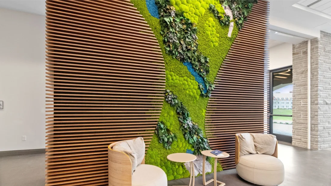 Preserved moss walls allow designers to introduce biophilic value without the operational burden of live planting systems. They maintain their form and color, require no irrigation or lighting, and integrate seamlessly alongside standard hospitality finishes such as stone, wood, metal, and textiles.