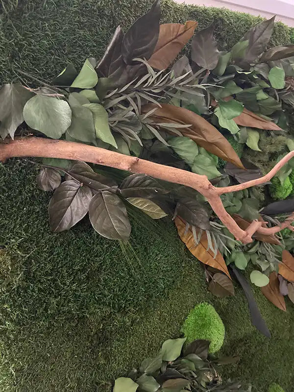 Naturalist team of horticulturists, designers, and installers put their heads together to create a stunning wall garden with beautiful textures and incredible shades of green. We used Flat Moss, Bun Moss, Manzanita Branch, Hedera Leaves, Ferns, and Mushrooms, a winning combination of plants when you’re looking to create a lush and leafy masterpiece. Incorporating Manzanita branches in our wall gardens is one way we bring an added feeling of the outdoors inside. Biophilic design is our greatest passion and we’ve brought it to life in this project as well. Connecting with nature through our work and living environments is essential which is why we love bringing natural elements indoors, be it via wall gardens or our gorgeous naturalistic furniture.