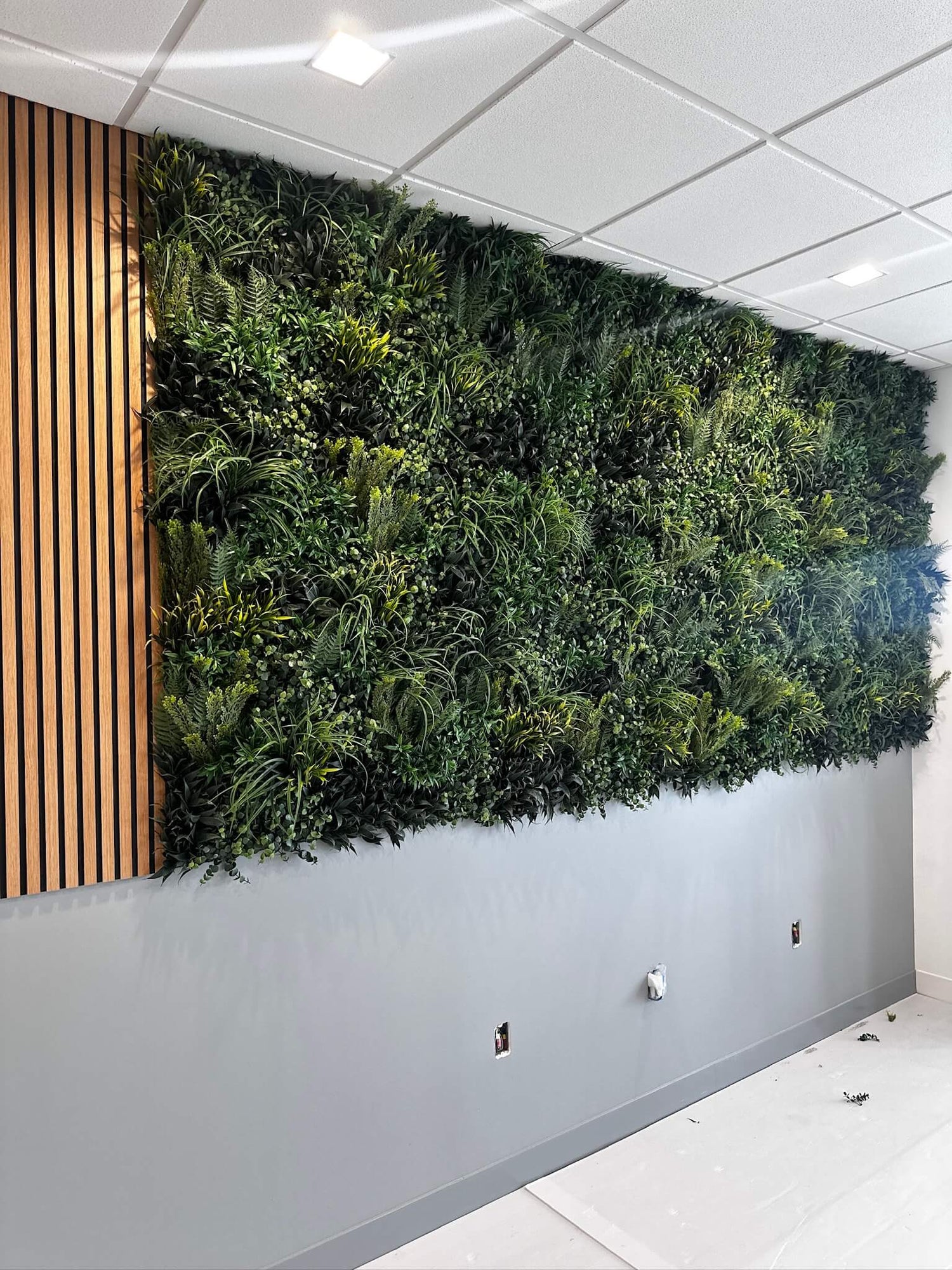 Located in the heart of Charlotte, NC, this office project brought a fresh sense of vibrancy to a professional setting through the installation of 77 square feet of our lifelike artificial Juniper plant panels. The wall delivers a crisp, evergreen look that stays lush year-round with zero maintenance. Perfect for high-traffic commercial environments, the installation brings a natural rhythm and texture into the space, softening architectural lines and creating a calming backdrop for daily work life. The clean, tailored composition complements the modern tone of the office while subtly reinforcing a connection to nature, no watering required.
