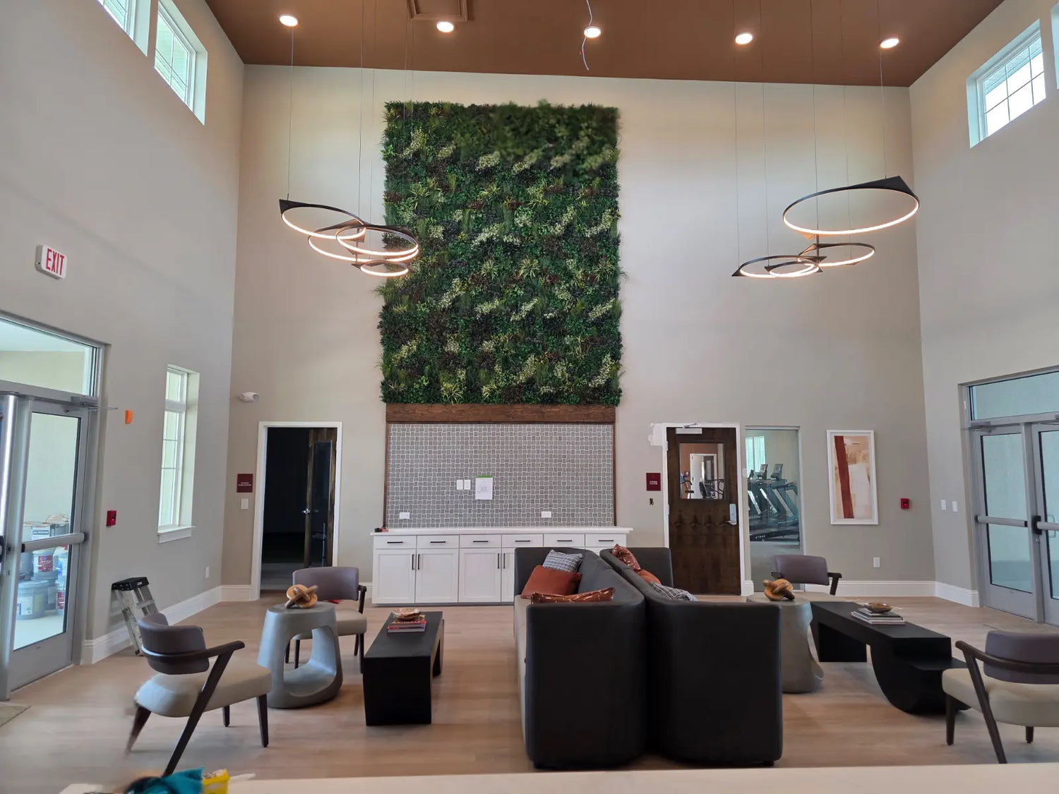 At Summer Pointe Village in Summerfield, FL, we designed a striking 132 sq ft artificial plant wall using our Biophilic Bliss panels to enhance a multi-family residential hospitality space. Installed high above eye level, this greenery feature draws the eye upward, adding softness, texture, and biophilic warmth to the open-air architecture.